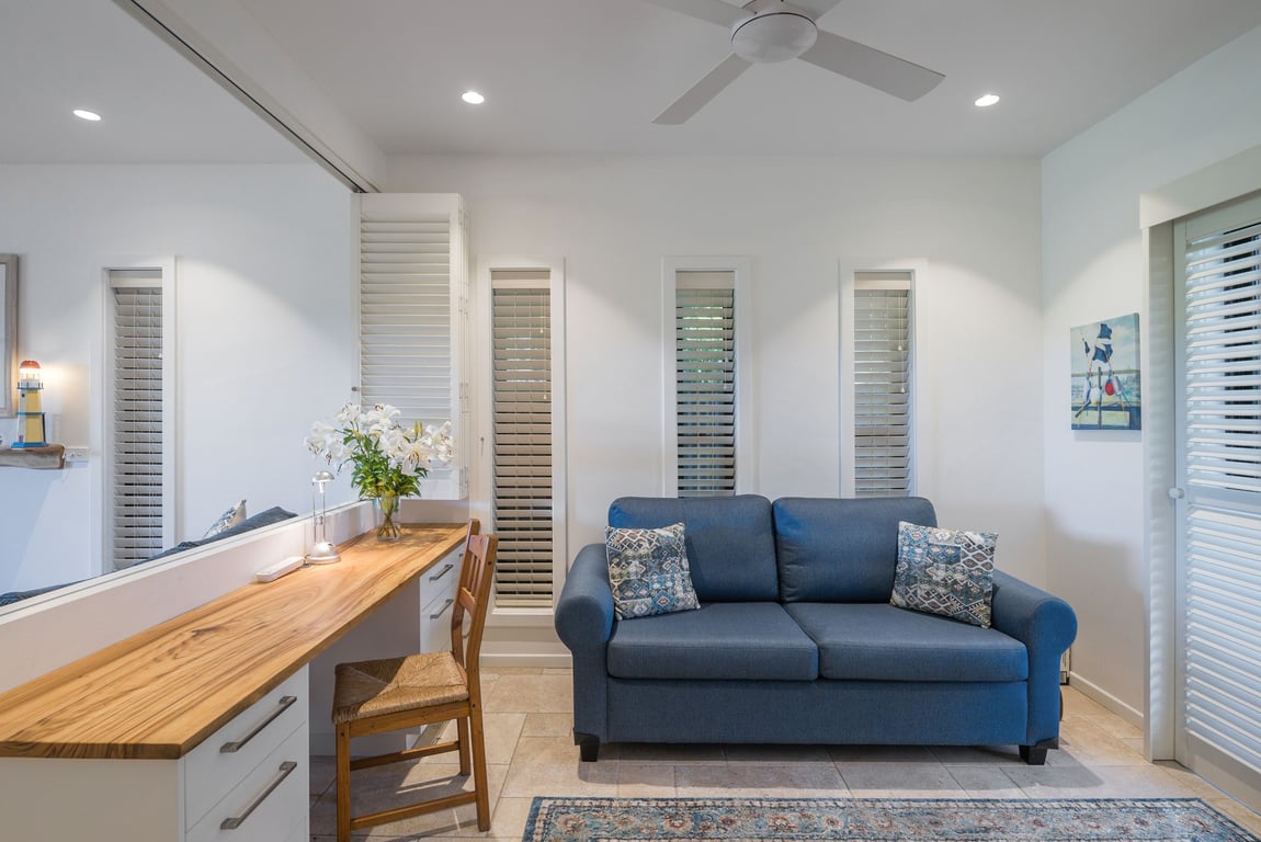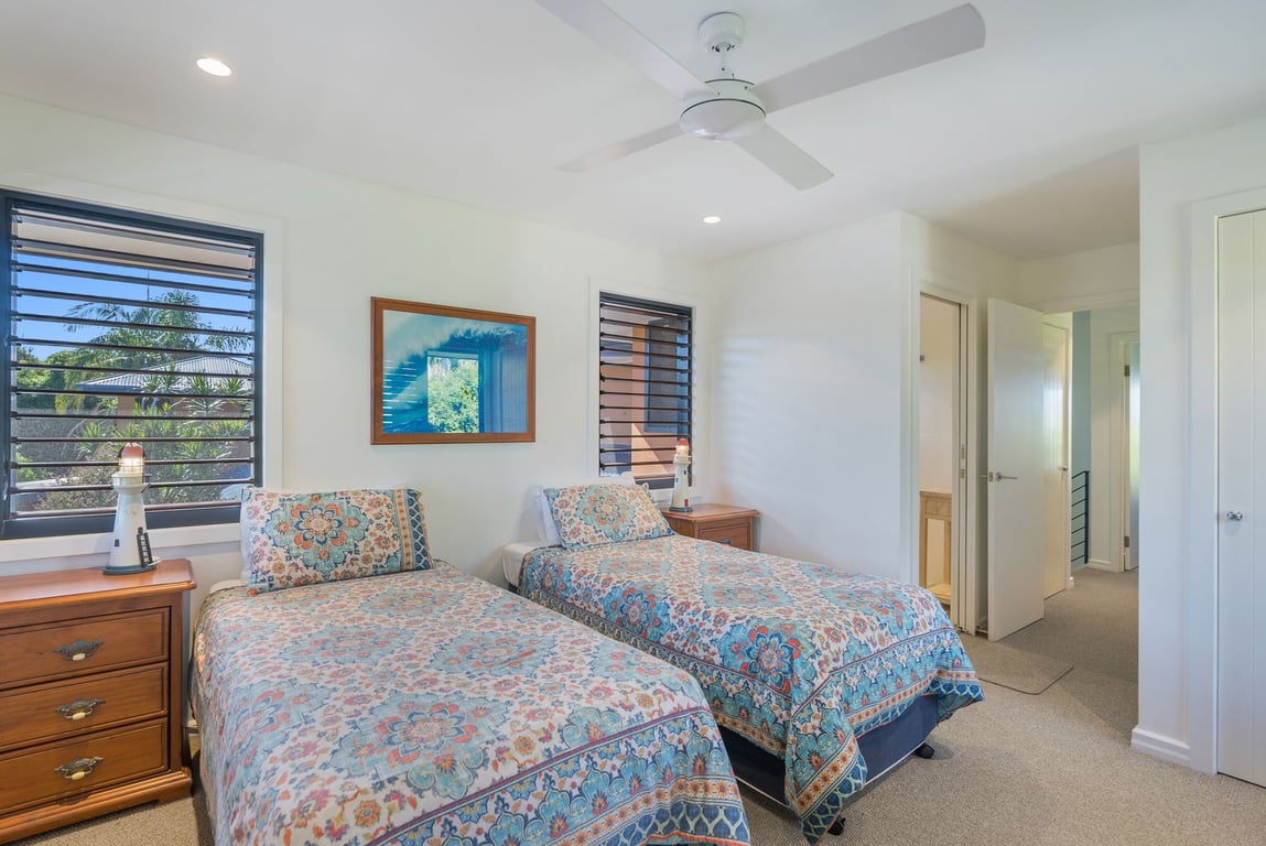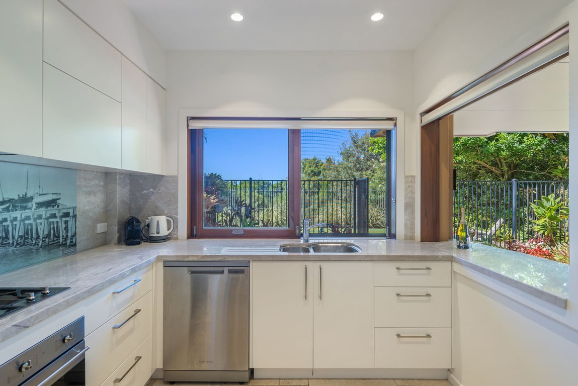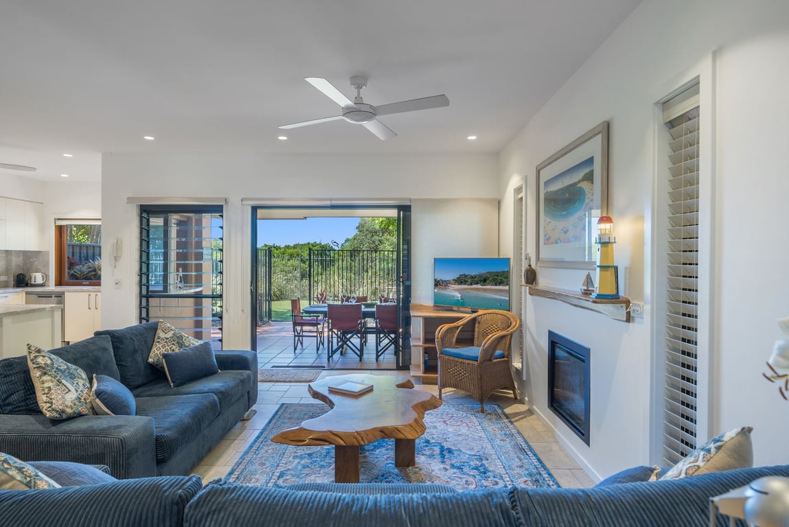 Direct beach access from this spacious 2 bedroom villa nestled in a private & peaceful bushland setting with sea views.