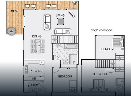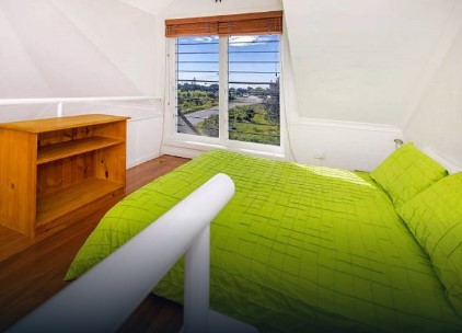 Downstairs provides a cozy bunk bed setup with a single on top and a double on the bottom — perfect for families or friends. Upstairs, you’ll find two inviting bedrooms, each with a queen bed. These rooms are open and airy with a loft-style design, creating a relaxed and spacious feel.