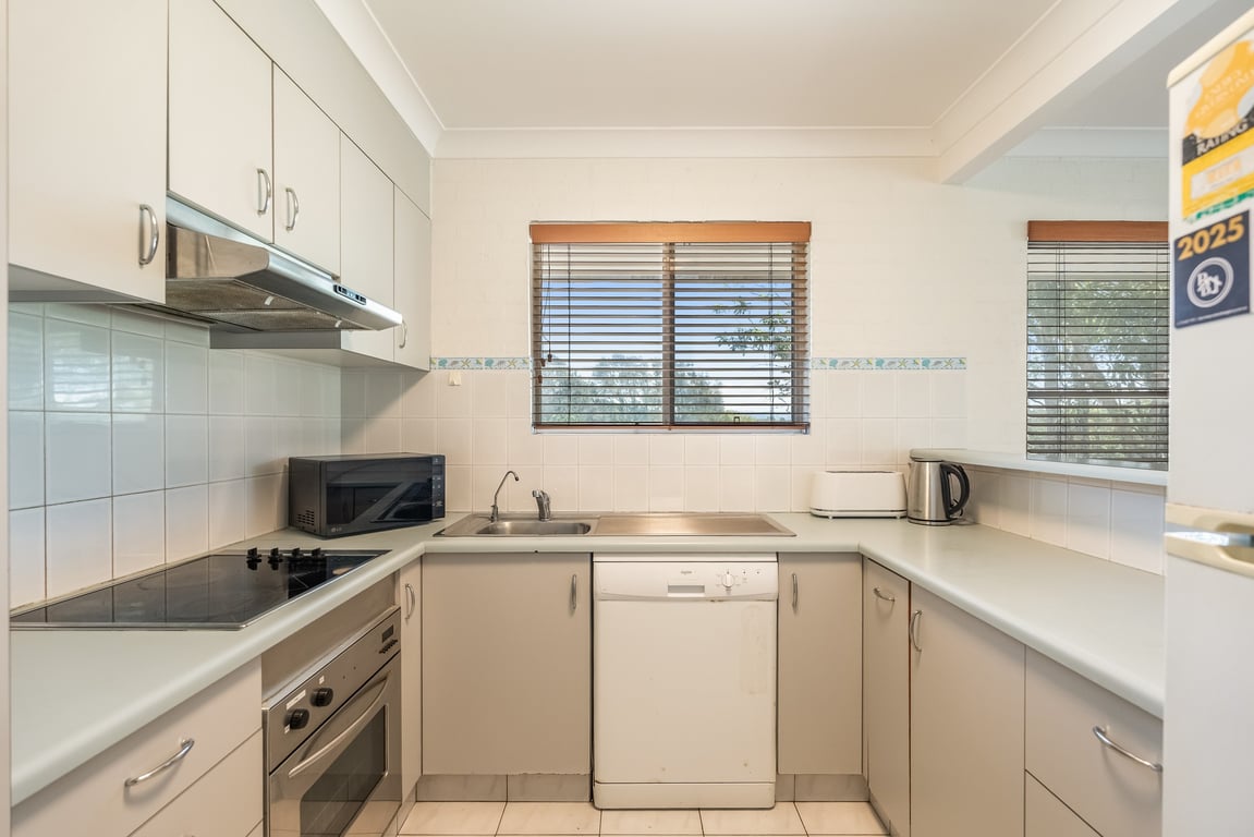 Inside, you’ll find an open-plan living, dining, and kitchen area, a fully equipped kitchen, and laundry facilities—everything you need for a comfortable stay. The large balcony overlooks the shared inground pool, offering a great spot to unwind or enjoy a meal outdoors. Linen is also provided for your convenience.