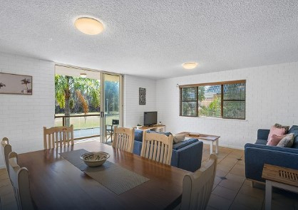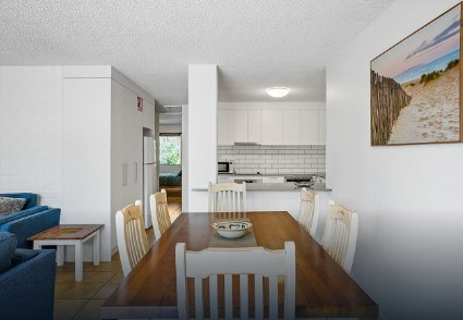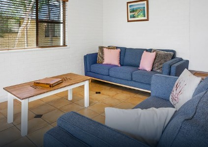 Bright first-floor apartment featuring two bedrooms, a bathroom, a kitchen with dining area, and a balcony overlooking the ocean. Ideally located just steps from stunning Clarkes Beach and within easy walking distance of the lively town centre, this simple apartment is a great choice for families wanting an affordable coastal getaway.