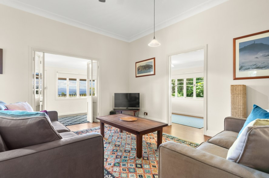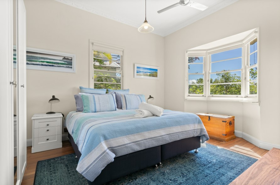 The much-loved “Wambiri” is a charming 2-bedroom cottage with polished timber floors throughout. Boasting sweeping ocean views across the bay to Julian Rocks, it’s the perfect spot for romantic sunsets. Unwind with a summer BBQ on the spacious deck, complete with two sunlounges where you can relax and soak in the scenery. Tucked away on Lighthouse Road at the start of the lighthouse walking track, this peaceful retreat is ideal for a relaxing staycation with the sound of the ocean as your backdrop.
