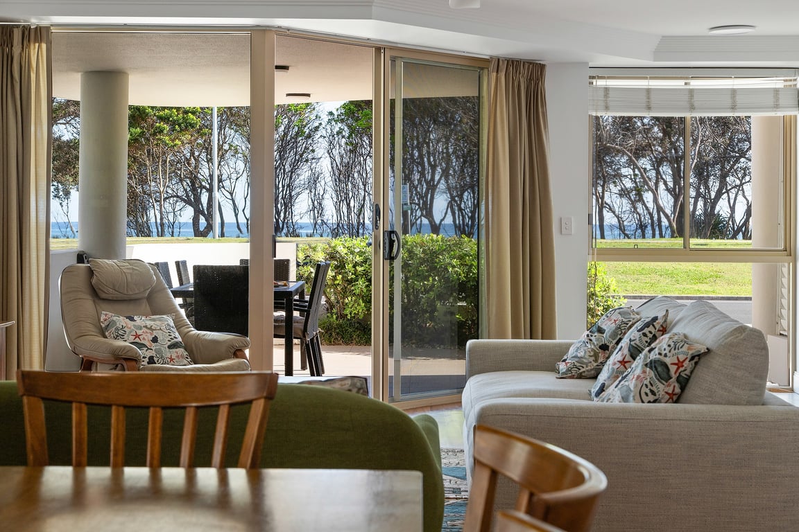 Relax with your morning coffee while taking in the water views, then grab your towel and stroll across to the beach for a refreshing swim in no time! This spacious ground-floor, 2-bedroom, 2-bathroom apartment is air-conditioned and designed for comfort, featuring timber floors, cozy couches, and a fully equipped kitchen with dishwasher and microwave. The north-facing patio is perfect for winter sun and summer breezes. With secure parking provided, you can leave the car at home and easily walk to Main Beach, town, cafes, playgrounds, picnic areas, and the iconic lighthouse. Linen is included, and complimentary Wi-Fi is available.