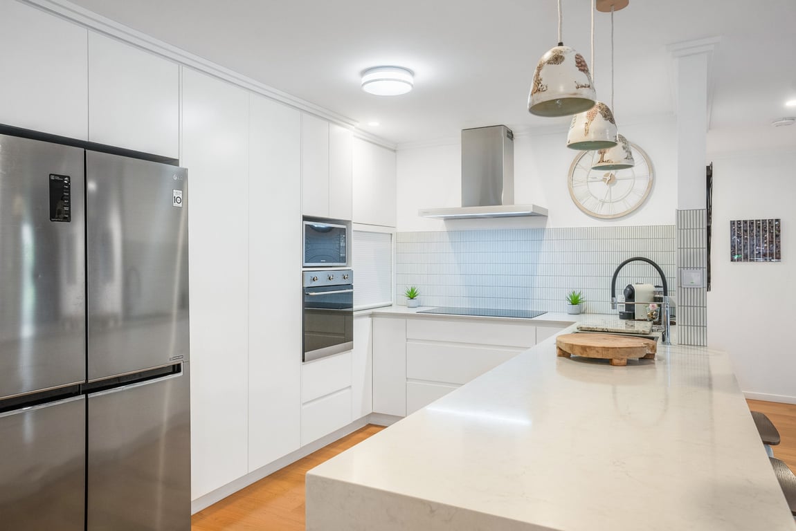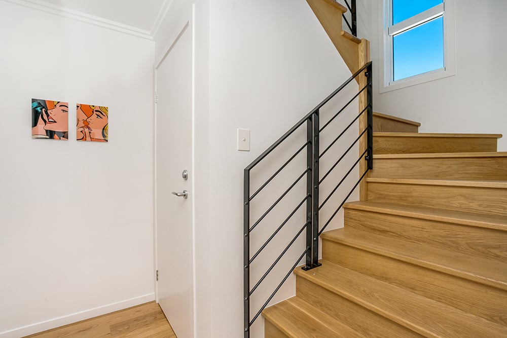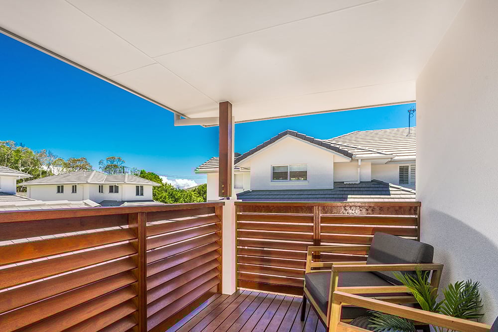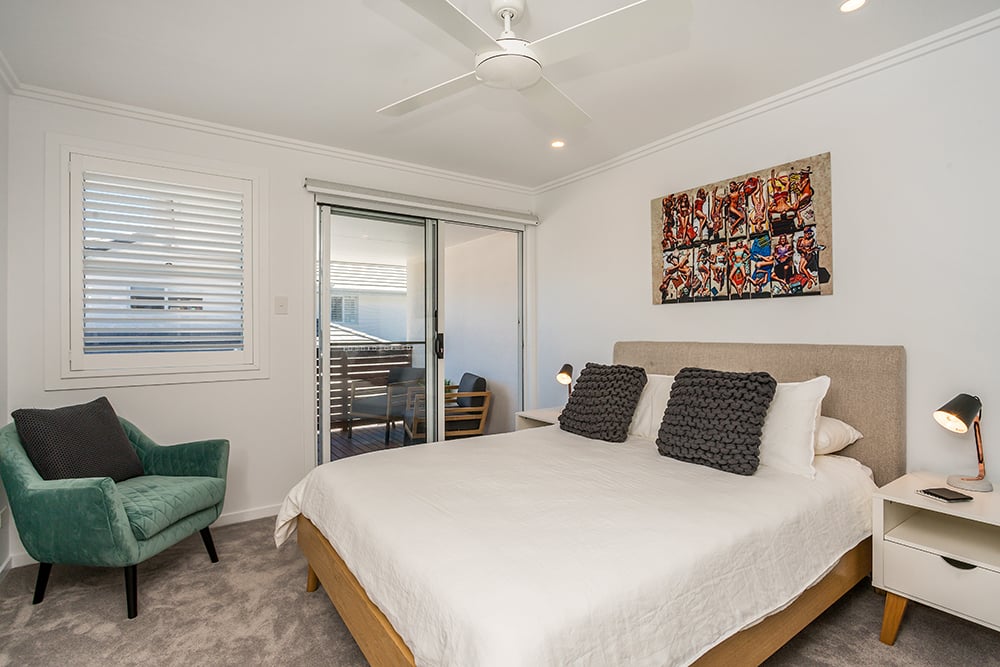 Upstairs, you’ll find three generous bedrooms: the master with a king-size bed, private balcony, walk-in robe, and ensuite; the second bedroom with a queen bed; and the third bedroom with two single beds, sharing a bathroom with the second bedroom. Air conditioning throughout keeps the townhouse comfortable in any season.