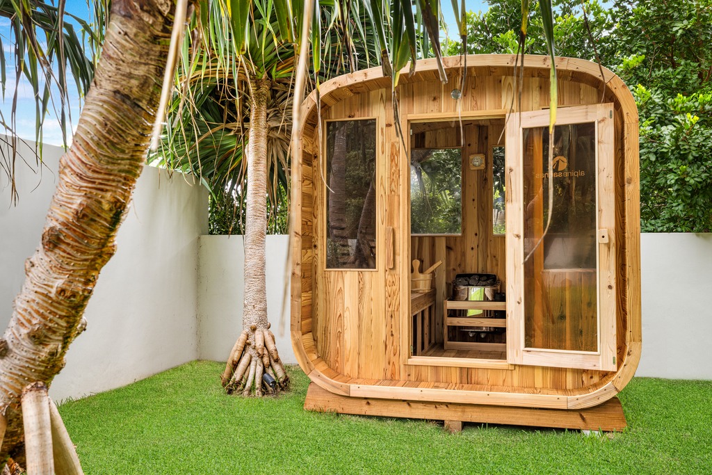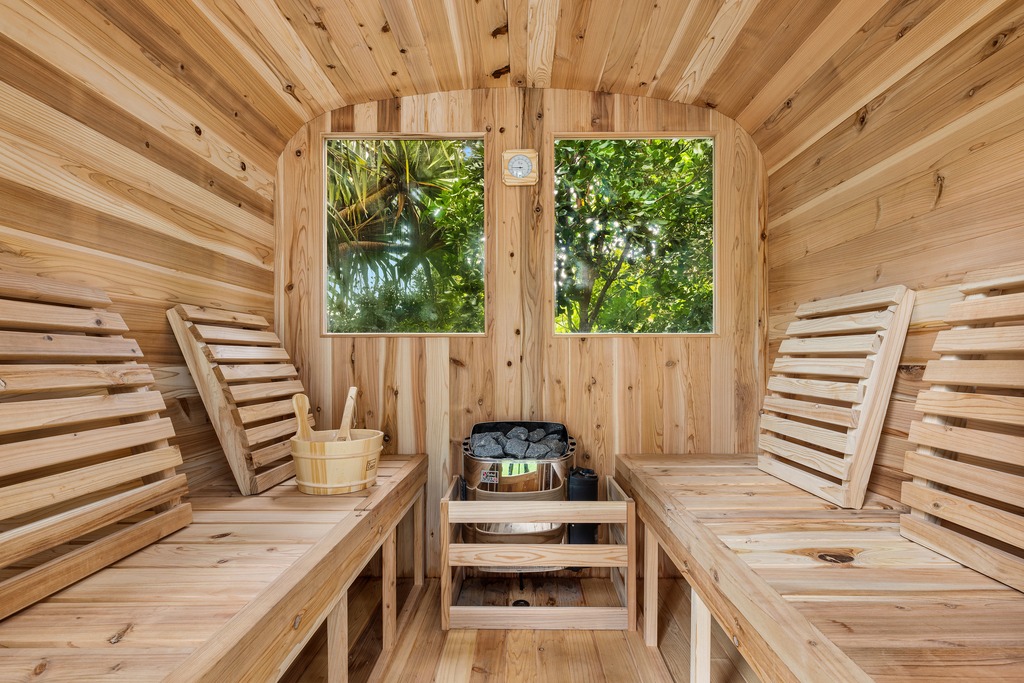 Downstairs features two beautifully appointed bedrooms, a lawn area, more outdoor seating and a meandering pathway that leads you easily to the beach. Elevate your relaxation to new heights by kicking back in the private sauna, melting away any lingering tension.