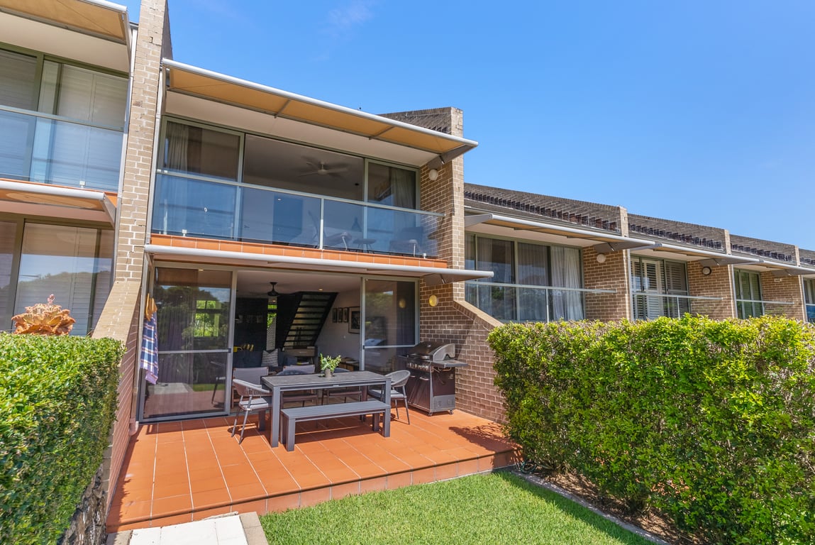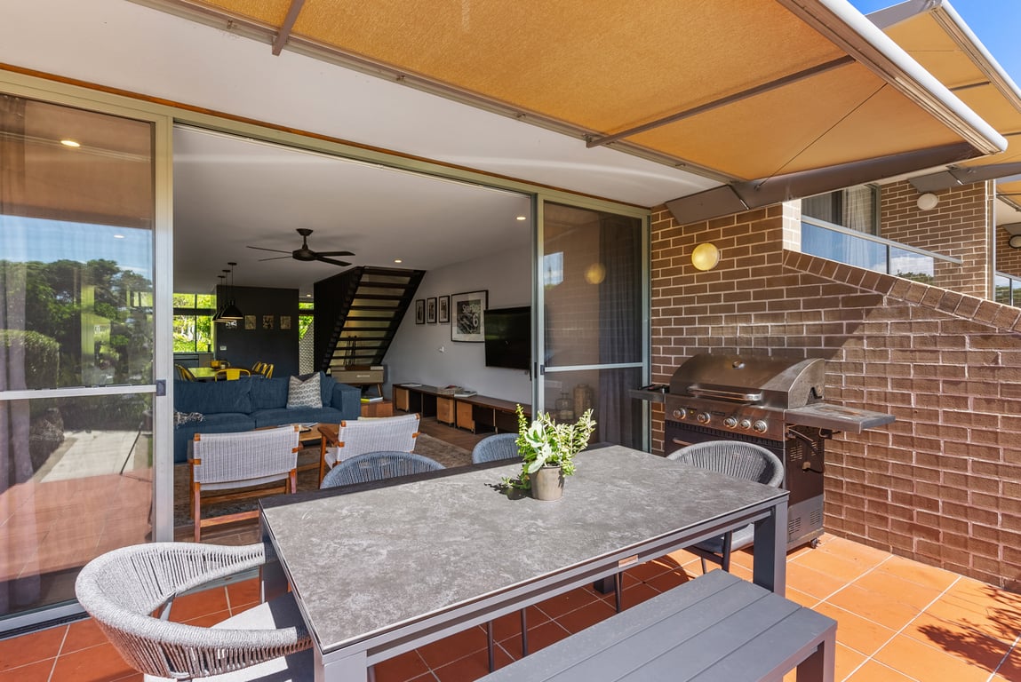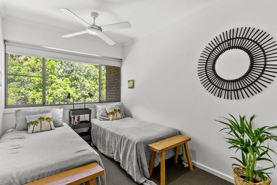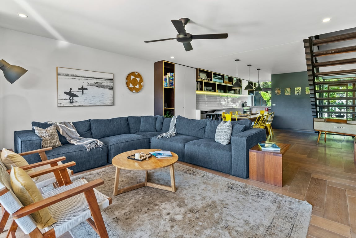 This beautifully renovated two-story, 3-bedroom townhouse comfortably accommodates up to six guests, with two queen beds and two single beds. The master bedroom on the upper level features a private ensuite, balcony, and stunning ocean views up the coast — a peaceful retreat for relaxation. The townhouse is designed for comfort, with cozy living spaces, a fully equipped kitchen, laundry facilities, and secure parking. Guests also have access to the shared slate-tiled pool within the complex.